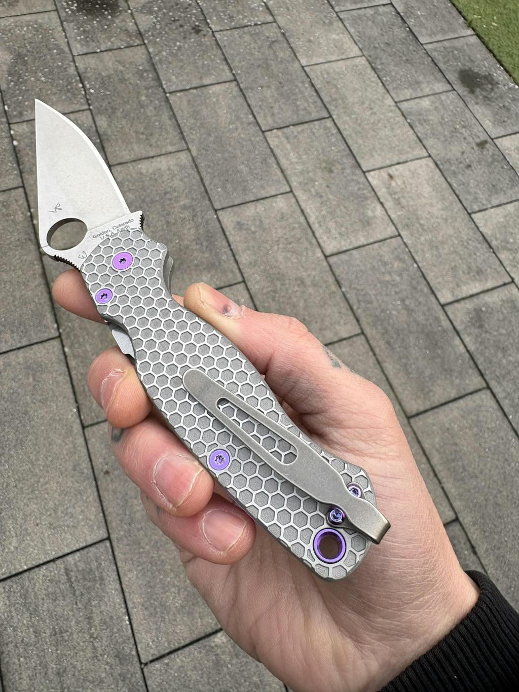Custom hand made titanium deep carry pocket clip for Spyderco knives, it's made of 6al-4v titanium. The clip comes with 2 T6 Stainless Torx Screws (Knife is not included).